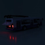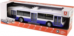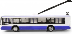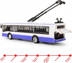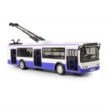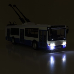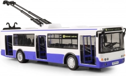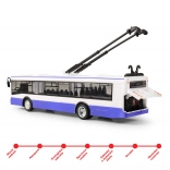 Entdecken Sie den Spaß am Stadtverkehr mit dem blauen Trolleybus, der tschechisch spricht und beim Öffnen der Türen Haltestellenansagen abspielt. Realistische Details im Maßstab 1:43 und eine Länge von 28 cm machen ihn zu einem großartigen Modell und einer robusten Spielzeugidee für den Alltag.