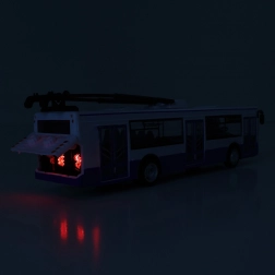 Die Bedienung ist einfach und macht Spaß: Öffnen Sie die Türen manuell, schließen Sie sie per Knopf auf dem Dach und beobachten Sie die blinkenden Frontlichter beim Schließen. Der Trolleybus fährt mit Rückziehmechanismus und startet so leicht auf dem Boden. LR44/AG13-Batterien sind bereits enthalten – spielen Sie sofort nach dem Auspacken los.