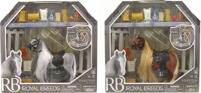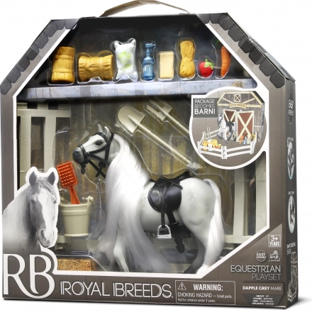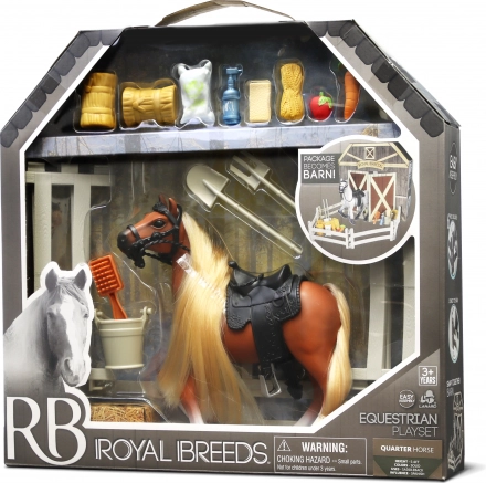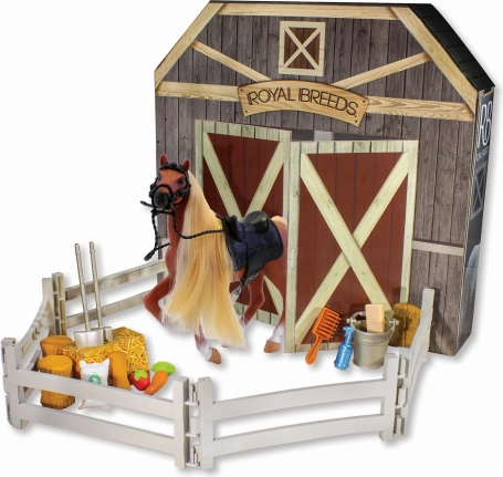 Dieses Set beinhaltet ein Pferd der Royal Breeds mit einer Größe von 17 cm und interaktiven Elementen, die jedes Kind faszinieren. Die aufklappbare Rückseite der Verpackung erweitert die Spielmöglichkeiten und verwandelt sich in einen Stall: