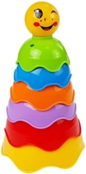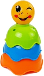 Die Spielpyramide aus stapelbaren Bechern in Regenbogenfarben fördert die Entwicklung des Kindes schon in den ersten Monaten. Die Becher aus hochwertigem, sicherem Kunststoff haben glatte, abgerundete Kanten, und oben sitzt der kleinste Becher mit einem fröhlichen Gesicht. Das Spielzeug fördert die Feinmotorik, die Hand-Auge-Koordination, das Erkennen von Farben und Formen sowie das logische Denken.