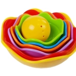 Die Regenbogenfarben und der kleinste Becher mit fröhlichem Gesicht motivieren Kinder, spielerisch zu entdecken und zu lernen.