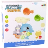 Dieses zauberhafte Spielzeug in Form eines Delfins erzeugt beim Einsatz im Wasser einen wunderschönen Wasserfall, der Kinder begeistert. Mit Hilfe von Schöpflöffeln in Form einer Schildkröte und eines Fisches können Kinder Wasser in den Kopf des Delfins gießen. Zwei getrennte Abschnitte im Inneren ermöglichen es dem Wasser, in verschiedene Teile des Spielzeugs zu fließen – entweder um die Schaufelräder anzutreiben oder direkt in das Maul des Delfins.