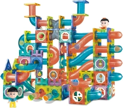 Diese leuchtende Kugelbahn verbindet beliebte Magnet-Baukästen mit der Dynamik schneller Kugeln. Durch LED-Elemente und zusätzliche Reflektoren ist die Fahrt der Kugeln noch attraktiver und auch bei gedimmtem Licht gut sichtbar. Kinder können verschiedene Strecken mit Rampen, Schleifen und Hindernissen bauen, neue Ideen ausprobieren und ihre Vorstellungskraft fördern.