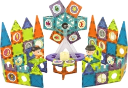 Das Set enthält 155 Teile. Auf den Aufklebern sind Tiere, Gemüse oder Obst abgebildet, was das Spiel noch interessanter macht. Sie können eine Burg bauen oder eine kleine, lustige Stadt mit einem Riesenrad gestalten.