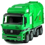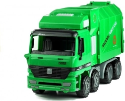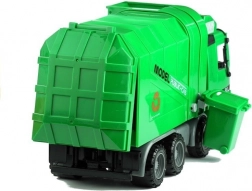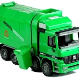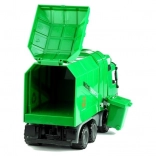Dieses große, grüne Müllauto begeistert alle Kinder, die Arbeitsfahrzeuge und realistisches Spielen lieben. Dank der öffnenden Heckklappe und dem cleveren Kippmechanismus sammeln Sie Abfall ein und entleeren ihn mühelos in die Mulde. Die offene Kabine bietet Platz für eine Fahrerfigur und einen Beifahrer, das Lenkrad lässt sich drehen und die beweglichen Rückspiegel erhöhen die Authentizität des Spiels. Profilierte Räder meistern verschiedene Untergründe, und der Schwungradantrieb sorgt nach einem leichten Schubs für Fahrt.