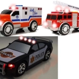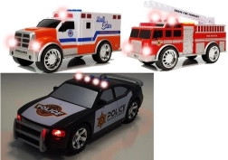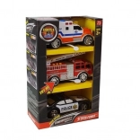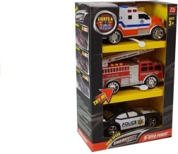Dieses Rettungsfahrzeug-Set begeistert alle kleinen Fans von Action und Spannung. Im Set enthalten sind ein Polizeiauto, ein Feuerwehrwagen und ein Krankenwagen – jedes Modell mit auffälligen Farben, typischen Beschriftungen und Elementen, die Kindern die Arbeit echter Einsatzkräfte näherbringen. Beim Drücken der Knöpfe leuchten rote Lichter und es erklingen Sirenen und Hupe, wodurch das Spiel noch realistischer wird.