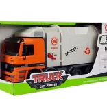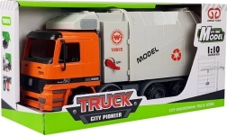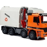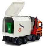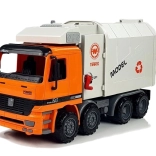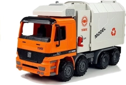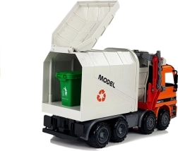 Der große Müllwagen in Orange‑Weiß bringt realistisches Spiel rund um das Sortieren von Abfällen. Robuste Verarbeitung, öffnbarer Container und Friktionsantrieb sorgen für eine gleichmäßige Fahrt und viel Action beim Beladen und Entladen. Die offene Kabine bietet Platz für Fahrer- und Beifahrer-Figuren (nicht im Lieferumfang enthalten).