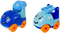 Die Packung enthält außerdem 2 Kunststoffautos mit niedlichen Gesichtern – einen Betonmischer und ein Feuerwehrauto mit Leiter – sowie ein Zubehörset, um zu Hause eine kleine „Tankstelle“ aufzubauen. Kinder können leicht eigene Szenen mit Verkehrsampel, Schildern und Barrieren gestalten.