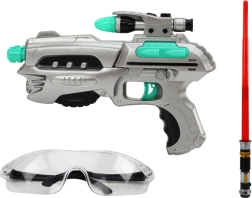 Dieses kosmische Set verwandelt jede Mission der Kinder in ein unvergessliches Erlebnis. Die futuristische Pistole mit Licht- und Soundeffekten zieht Kinder in „Weltraumschlachten“, während das rote Lichtschwert mit einer Länge von bis zu 80 cm jedes Abenteuer erhellt. Die Schutzbrille komplettiert die Ausrüstung und vermittelt das Gefühl eines echten Weltraumkämpfers.