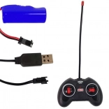 Die Steuerung ist einfach und intuitiv – zwei Hebel an der Fernbedienung regeln die Richtung vor/zurück und rechts/links. Die hinteren Türen des Containers lassen sich öffnen, sodass das Kind kleine Spielzeuge und Fracht befördern kann. Das Modell wird von einem 3,7 V 500 mAh Lithium-Akku (im Lieferumfang) mit USB-Ladefunktion betrieben, die Fernbedienung benötigt 2× AA (nicht enthalten).