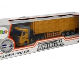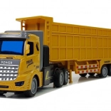Dieser detailreich gestaltete ferngesteuerte Sattelzug bietet eine realistische Fahrt, die Kinder lieben. Profilreifen, gelbe Kabine mit Anhänger und auffällige Aufdrucke fördern Fantasie und Rollenspiel. Beim Vorwärtsfahren leuchten in der Kabine blaue LEDs, die dem Spiel einen tollen Effekt verleihen.