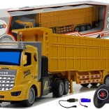 Der Sender auf 27 MHz verfügt über zwei Joysticks für eine intuitive Steuerung: vor/zurück und rechts/links. Öffnende Heckklappe des Anhängers ermöglicht den Transport kleiner Spielzeuge oder Fracht. Im Set ist alles für die Fahrt enthalten – 3,7 V 500 mAh Akku und USB-Kabel. Es werden lediglich 2× AA-Batterien für den Sender benötigt.