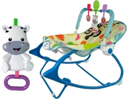Der abnehmbare Spielbogen fördert Sinne und Motorik – bunte Hängespielzeuge laden zum Greifen ein, und das klingende Zebra spielt nach dem Ziehen eine Melodie ab. Wenn das Kind größer wird, genügt es, den Sicherheitsgurt abzunehmen und das Produkt als bequemen Sessel zu nutzen. Die einfache Pflege des Bezugs durch Maschinenwäsche wird jeder Elternteil schätzen.