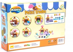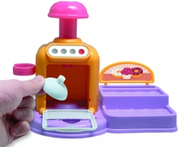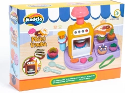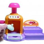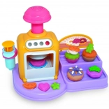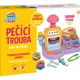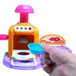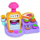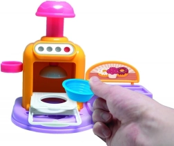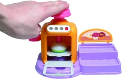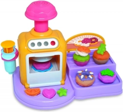 Öffnende Ofentür, Knöpfe und Hebel machen das Backen zu einem spaßigen Ritual. Lege das Törtchen hinein, drücke und beobachte, wie daraus eine fertige Knet-Leckerei wird.