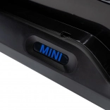 Sicherheit und Komfort stehen an erster Stelle: 2,4‑GHz‑Fernbedienung mit STOP-Funktion, sanftes Anfahren, zwei Fahrstufen vor/zurück und weiche EVA-Räder für ruhige Fahrten auf verschiedenen Untergründen. Kinder freuen sich über das Multimedia-Panel mit MP3, Bluetooth, USB und AUX sowie die Hupe im Lenkrad. Der ergonomische Sitz aus Ökoleder mit geprägtem MINI-Logo unterstreicht die hochwertige Verarbeitung.