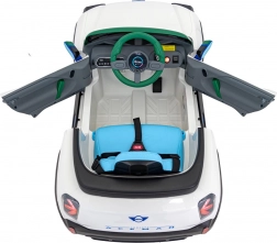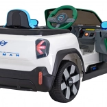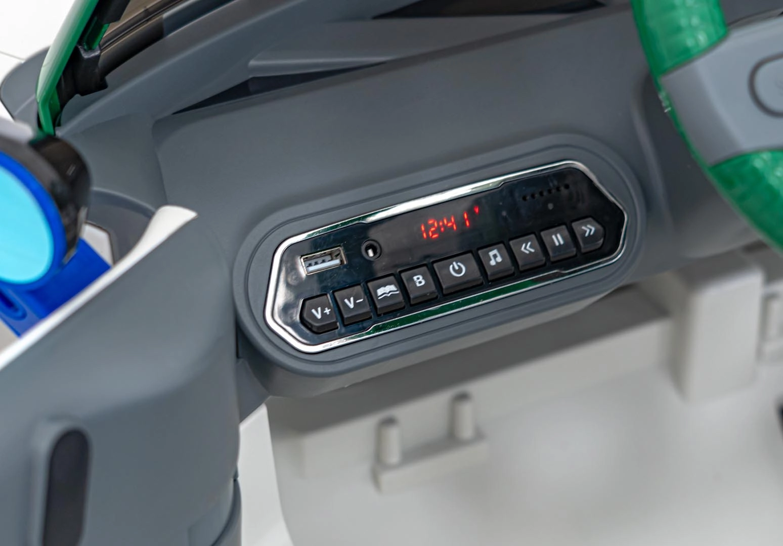 Dank der weichen EVA-Räder (Ø 22 cm, Breite 8 cm) ist die Fahrt leise und komfortabel, auch auf rauerem Untergrund. Das Auto verfügt über öffnende Türen, beleuchteten Start, vordere und hintere LED-Lichter sowie einen beleuchteten Kühlergrill. Der bequeme Sitz aus Kunstleder mit MINI-Prägung und Sicherheitsgurt bietet Sicherheit und Stil. Das Audio-Panel mit MP3, Bluetooth, USB und AUX erfreut kleine Fahrer mit ihrer Lieblingsmusik.