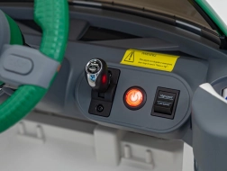 Volle Kontrolle über die Fahrt dank Fernbedienung mit drei Geschwindigkeiten und Sicherheitstaste STOP. Ideal für die ersten Fahrten und belebtere Umgebungen.