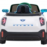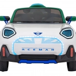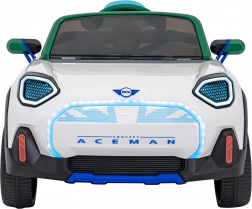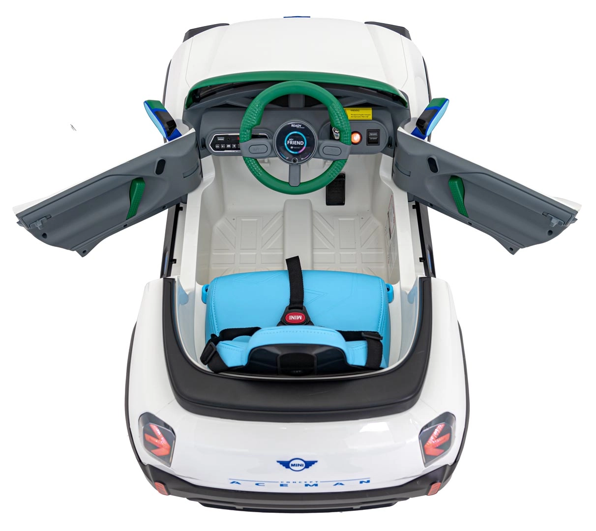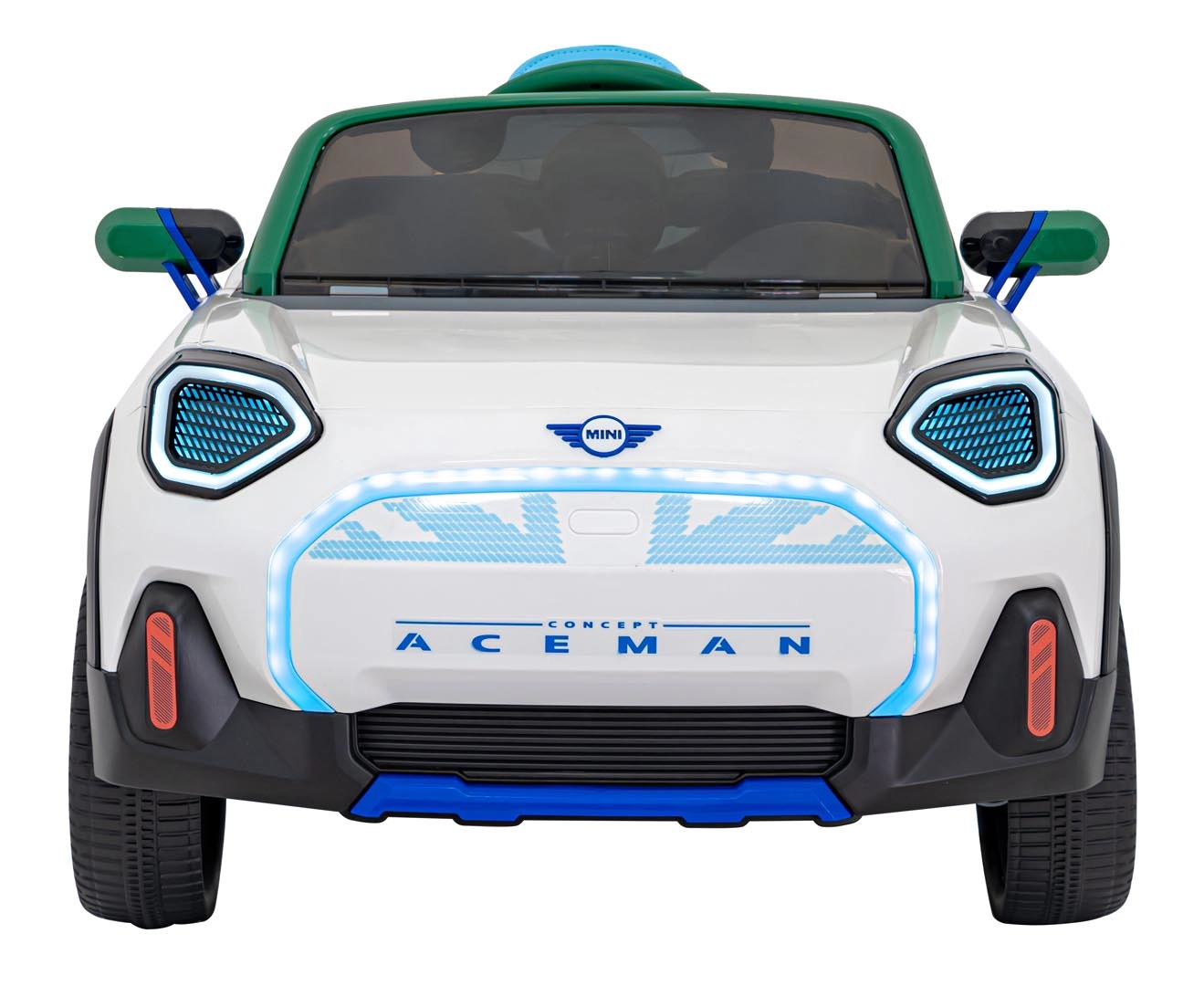 Der MINI Concept Aceman ist ein Premium-Kinderauto mit Fokus auf Sicherheit, Spaß und Design. Die leistungsstarke Antriebskonfiguration (2x20 W vorne + 2x35 W hinten) in Kombination mit einem 12 V 9 Ah Akku sorgt für sanftes Anfahren, zwei Geschwindigkeiten sowie Vorwärts-/Rückwärtsfahrt. Die elterliche Aufsicht gelingt bequem über die 2,4-GHz-Fernbedienung mit drei Geschwindigkeiten und Sicherheitstaste STOP.