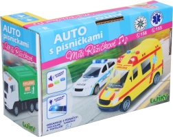 Dieses Polizeiauto ist das perfekte Spielzeug für Kinder ab 3 Jahren. Dank des Schwungradantriebs macht das Spielen mit dem Auto Spaß und ist realistisch. Licht- und Soundeffekte, die durch Tasten auf dem Autodach aktiviert werden, bieten fröhlichen Spaß und regen die kindliche Fantasie an. Enthält drei beliebte Lieder von Míša Růžičková: Polizeiauto, Krankenwagen und Müllabfuhr.