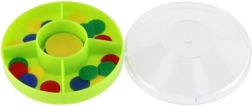 Kinderspiel Blechy ist ein unterhaltsames Spiel, das die Feinmotorik und Konzentration bei Kindern fördert. Im Paket finden Sie vier verschiedene Farbsets von Scheiben, jedes Set enthält fünf kleine Scheiben und eine große. Das Spiel enthält auch eine Box mit nummerierten Fächern, die viele Spielkombinationen ermöglicht. Die Aufgabe besteht darin, mit dem großen Floh alle kleinen Flöhe in die Fächer der Box zu bringen.