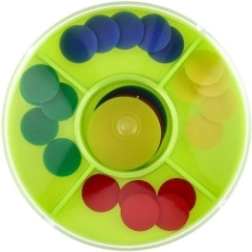 Das Spiel hilft Kindern, ihre Feinmotorik durch den Umgang mit kleinen Scheiben zu entwickeln.