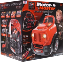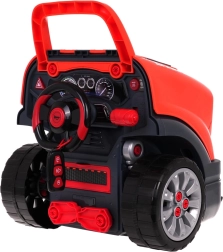 Dieser interaktive Lastwagen verwandelt das Kinderzimmer in eine echte Werkstatt. Unter der Motorhaube verbirgt sich ein großer, zerlegbarer Motor, der sich mithilfe von Schrauben und Werkzeugen leicht zusammen- und auseinanderbauen lässt; es lassen sich sogar Zündkerzen und Räder wechseln. Auf dem Armaturenbrett befinden sich ein Startknopf mit Startgeräuschen, ein Lenkrad mit Hupe und die Warnblinkanlage. Unter dem Lenkrad gibt es ein praktisches Staufach für Werkzeuge.