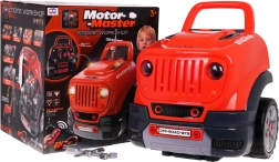 Unter der Haube verbirgt sich ein großer Motor, der sich mithilfe von Schrauben und Werkzeugen auseinander- und wieder zusammenbauen lässt. Kinder trainieren ihre Feinmotorik und verstehen, wie ein Auto funktioniert.