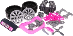 Die Fernbedienung in Schlüsselform aktiviert leuchtende Frontscheinwerfer und Motorbeleuchtung sowie Geräusche für Verriegeln/Entriegeln und die Hupe. Ein praktischer Tragegriff erleichtert den Transport, das Fach unter dem Lenkrad fasst alle Schrauben, Werkzeuge und Zubehörteile. Das Set fördert Fähigkeiten, Fantasie und vermittelt spielerisch Grundlagen der Mechanik.