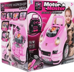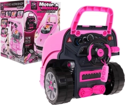 Die interaktive Fahrzeugfront mit Armaturenbrett und automatischem „Schalthebel“ bietet Kindern ein realistisches Erlebnis von Fahren und Service. Nach dem Drücken des Startknopfs ertönt das Startgeräusch, beim Vorwärts- und Rückwärtsfahren werden passende Effekte ausgelöst. Unter der Haube verbirgt sich ein großer zerlegbarer Motor, an dem kleine Mechaniker „Zündkerzen“, Räder und weitere Komponenten wechseln können.