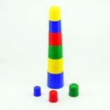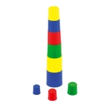 Stapelbecher sind ein klassisches Lernspielzeug, mit dem Kinder die Präzision ihrer Bewegungen trainieren und Größenverhältnisse verstehen. Jeder Becher hat andere Maße und eine andere Farbe – so lässt sich ein hoher Turm bauen oder alles ineinander stecken, um Logik und Geduld zu fördern.