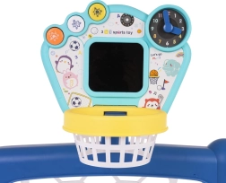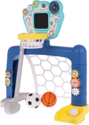 Interaktives Fußball-, Basketball- und Golf-Set 3-in-1, für Kinder ab 18 Monaten. Auf dem Panel befinden sich drei Tasten zum Umschalten der Modi. Das Spielzeug wird mit 3 AA 1,5 V Batterien betrieben (nicht im Lieferumfang enthalten). .Spielzeug-Modi: . - Taste FUN: Kinder hören Anweisungen zur Ausführung und folgen ihnen, .- Taste BEWEGUNG: startet Bilder auf dem Panel zusammen mit Geräuschen und Musik, .- Taste AUS: das Kleinkind steuert die Ergebnisse auf dem Panel. .Funktionen des Spielzeugs: . - geeignet für Kinder über 18 Monate, .- 3 Spiele zur Auswahl: Golf, Basketball, Dosenwerfen mit Ball, verschiedene Spielmöglichkeiten, .- Uhr mit beweglichen Zeigern zum Erlernen der Uhrzeit, .- Zahnräder zum Üben der Präzision, .- Steckbücher, .- interaktives Panel mit Ton- und Lichteffekten. |