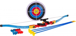 Im Lieferumfang enthalten sind außerdem Wurfpfeile mit Saugnäpfen sowie eine Zielscheibe mit Gummisaugnapf, die auf einer glatten Oberfläche befestigt werden kann. Die weichen Saugnäpfe an Pfeilen und Wurfpfeilen sorgen für maximale Sicherheit, während das Spiel die Hand-Auge-Koordination fördert und die Muskulatur von Schultern und Rücken stärkt.