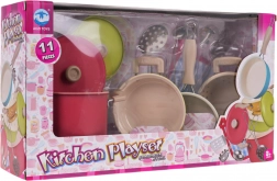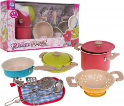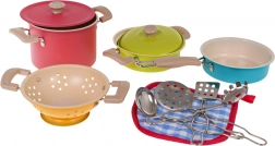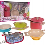 Dieses bunte Kindergeschirr-Set bringt ein authentisches Kocherlebnis in jede Kinderküche. Zwei Töpfe mit Deckeln, eine Pfanne, ein Sieb und vier praktische Küchenwerkzeuge bieten alles, was Kinder brauchen, um echtes Kochen nachzuahmen. Dank der Metallmaterialien ist das Set stabil, langlebig und bereit für den täglichen Spieleinsatz.