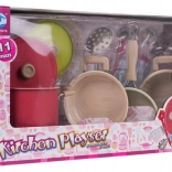 Enthalten sind außerdem Zange, Schöpflöffel, Wender und Schaumlöffel – alles, was Kinder zum Kochen und Servieren brauchen.