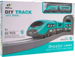 Baue deine eigene Stadt mit Tunneln, Brücke und Bahnhof. Diese vielseitige Eisenbahn fördert die Entwicklung der Fantasie, die Motorik und das Teamspiel. Hochwertiger Kunststoff in leuchtenden Farben sorgt für Langlebigkeit und langanhaltenden Spaß. Der Zug ist batteriebetrieben und fährt vorwärts, die Waggons lassen sich dank starker Magnete leicht koppeln.