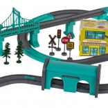 Das Komplettset mit Schienen, Bahnhof, Brücke, Tunnel und Zubehör ermöglicht immer neue Streckenvarianten und Spielszenarien.