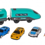 Der Zug fährt mit 2× AAA (nicht enthalten) vorwärts, die Waggons verbinden sich mit starken Magneten für eine einfache und stabile Kopplung.