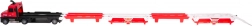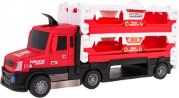 Platzieren Sie das Auto auf der unteren Ebene und drücken Sie den Hebel auf dem Dach des Trucks. Der Launcher schießt das Auto nach vorne über die ausgeklappte Strecke.