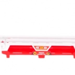 Dieser interaktive 2-in-1-Transporttruck begeistert alle kleinen Rennfahrer. Drei Etagen bieten reichlich Platz zur Aufbewahrung der Autos und bilden ausgeklappt eine lange Strecke, auf der die Autos dank der integrierten Katapult-Abschussvorrichtung dahinrasen. Die robuste Konstruktion in lebhaften Farben und Gummireifen sorgen für komfortables Handling und Stabilität.