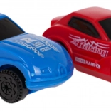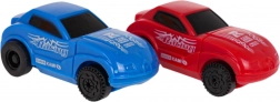 Einfach nach hinten ziehen und loslassen. Zwei Rennwagen mit beweglicher Front schießen mit unglaublicher Geschwindigkeit durch Schleifen und über Geraden.