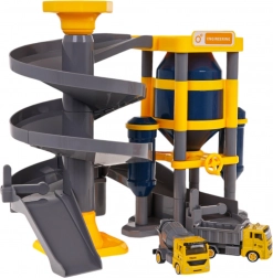Das Baugleis mit Zubehör umfasst ein Silo, Rutschen und Baumaschinen wie Betonmischer und Kipper, die es Kindern ermöglichen, reale Bauprozesse zu simulieren. Dank des hochwertigen Kunststoffs und der gut durchdachten Details ist das Set robust und sicher für kleine Bauherren.