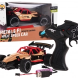Goldenes Metallauto mit Fernsteuerung ist für Kinder ab 6 Jahren konzipiert, die Nervenkitzel bei schnellen Fahrten erleben möchten. Das Modell im Maßstab 1:20 und seine Gummireifen sorgen für hervorragenden Grip auf der Oberfläche. Die Metallkarosserie gewährleistet hohe Haltbarkeit, was es zum idealen Spielzeug für aktive Kinder macht.