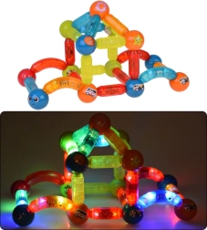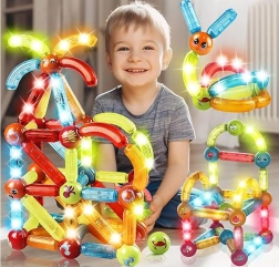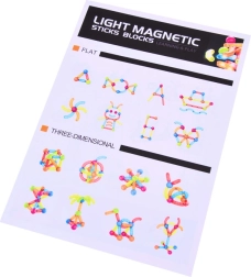 Das magnetische Bausteinset ermöglicht den Bau verschiedener flacher und dreidimensionaler Strukturen, fördert kreatives Spielen und die Entwicklung motorischer und logischer Fähigkeiten.