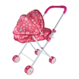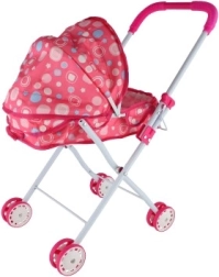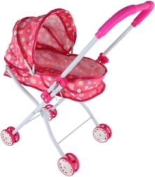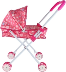 Gönnen Sie Ihrer kleinen Mama einen wunderschönen tiefen Puppenwagen mit weichem Stoffkörbchen. Dank der leichten Metallkonstruktion und der robusten Räder lässt er sich zu Hause und draußen leicht handhaben. Stoffteile in rosa Mustern wirken verspielt, und die sorgfältige Verarbeitung sorgt für lange Haltbarkeit.