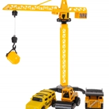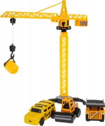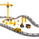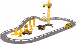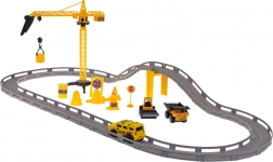 Der Kran verfügt über einen schwenkbaren Arm um 360° und einen manuell bedienbaren Haken zum Beladen. Weitere Zubehörteile sind verschiedene bewegliche Baufahrzeuge, wie ein Kipper mit verstellbarer Mulde und Walzenfahrzeuge mit schwenkbaren Trommeln. Das Elektroauto wird von einer Batterie des Typs 1 x AA 1,5 V betrieben (Batterien nicht im Lieferumfang enthalten).