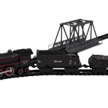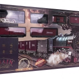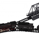 Retro-Zugset mit Rauchfunktion, Fahrgeräuschen und Schienen im Set, geeignet für Kinder ab 3 Jahren. Das Spielzeug wird mit einem wiederaufladbaren 3,7-V-Akku betrieben (im Lieferumfang enthalten), die Fernbedienung mit 2 x AA 1,5 V (nicht enthalten). Die Fernbedienung ist zugleich eines der Wagen. Während der Fahrt stößt die Lokomotive Rauch aus dem Schornstein und an den Seiten aus (nach Befüllen mit Wasser – Pipette im Set enthalten), zusätzlich leuchtet das vorn angebrachte Licht. Die Schienen lassen sich leicht verbinden, sind sicher und robust im Gebrauch. .. Funktionen des Sets: . - geeignet für Kinder ab 3 Jahren, . - Rauch kommt aus dem Schornstein und zieht an den Seiten hinab, .- Scheinwerfer an der Front der Lokomotive, .- Fahrgeräusche, .- Fahrt vorwärts und rückwärts. |