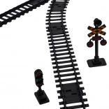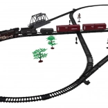 - Lokomotive, .- Personenwagen, .- Kohlewagen, - Wagen mit Pilot, - 3 x Wagen mit Containern, .- Schienenkomponenten, .- 2 Brücken, .- 2 Schilder, .- 2 Bäume, .- Wasserpipette, .- USB-Ladekabel, .- Anleitung, . |