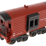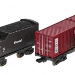 - Lokomotive ca. 23 cm x 8 cm x 5,5 cm .- Personenwagen ca. 13 cm x 6 cm x 4,5 cm, .- Kohlewagen ca. 14,5 cm x 7 cm x 4,5 cm, .- Wagen mit Pilot ca. 12,5 cm x 5 cm x 4,5 cm, .- Wagen mit Containern ca. 22,5 cm x 7 cm x 4,5 cm, .- Strecke ca. 216 cm x 99 cm, .- Verpackung ca. 87,5 cm x 43 cm x 9,5 cm, . |
