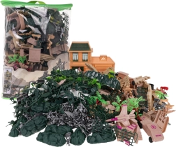 Dieses umfangreich ausgestattete Set verwandelt jedes Zimmer in eine Fantasie-Kampfzone. Kinder finden Panzer, gepanzerte Fahrzeuge, Geländewagen, Flugzeuge, Schiffe, eine Basis, Mauern, Sandsäcke, Stacheldraht und Fässer – einfach alles für realistische Armeeeinsätze. Die Figuren gibt es in drei Farben und zwei Größen, sodass Teams und Rollen leicht unterscheidbar sind.