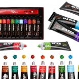 Ausgewogenes Set aus Grund- und Zusatzfarbtönen in praktischen 12-ml-Tuben ermöglicht Arbeiten an kleinen und größeren Bildern.